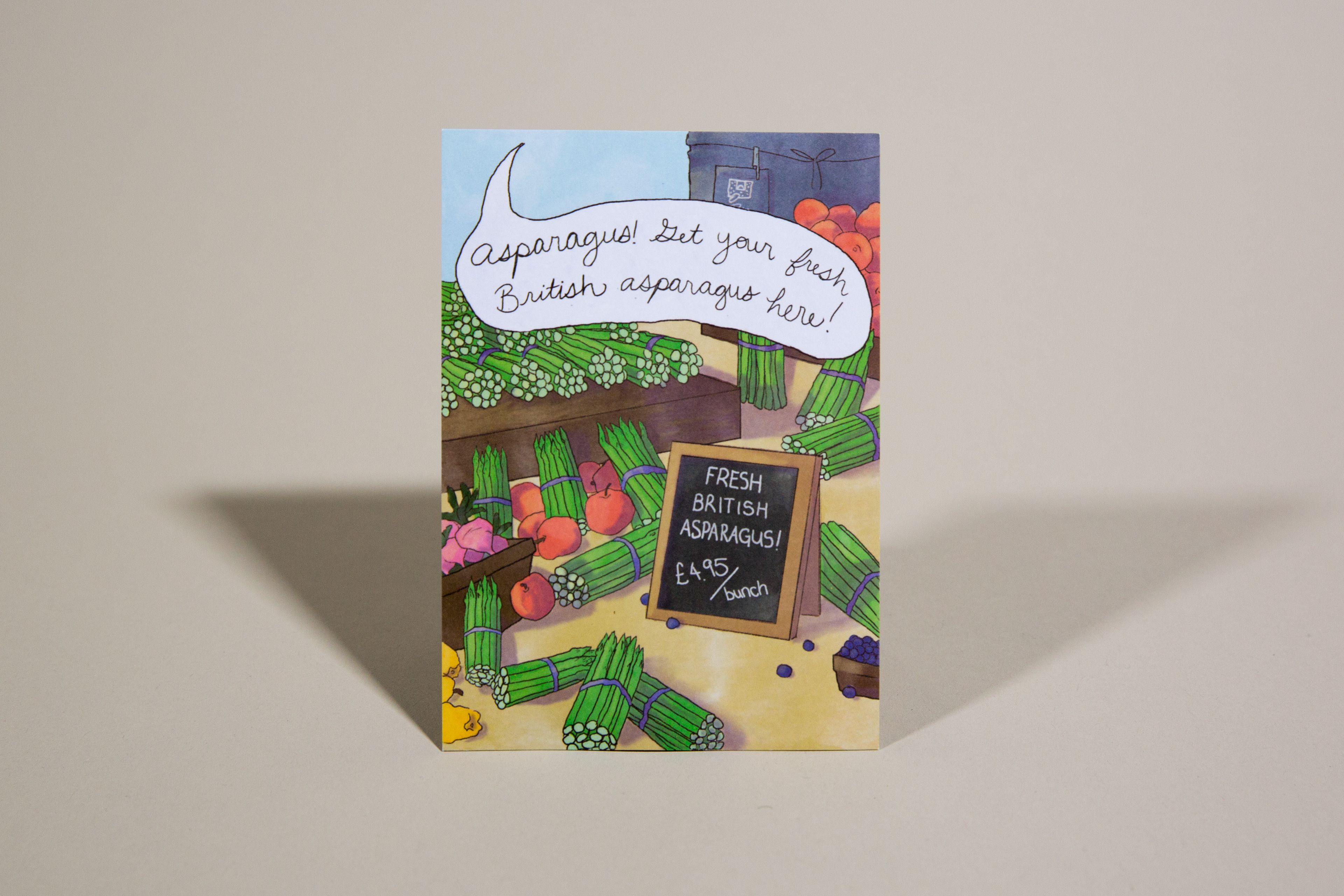 An illustrated recipe card, to promote the UK selling asparagus in the restaurants.
