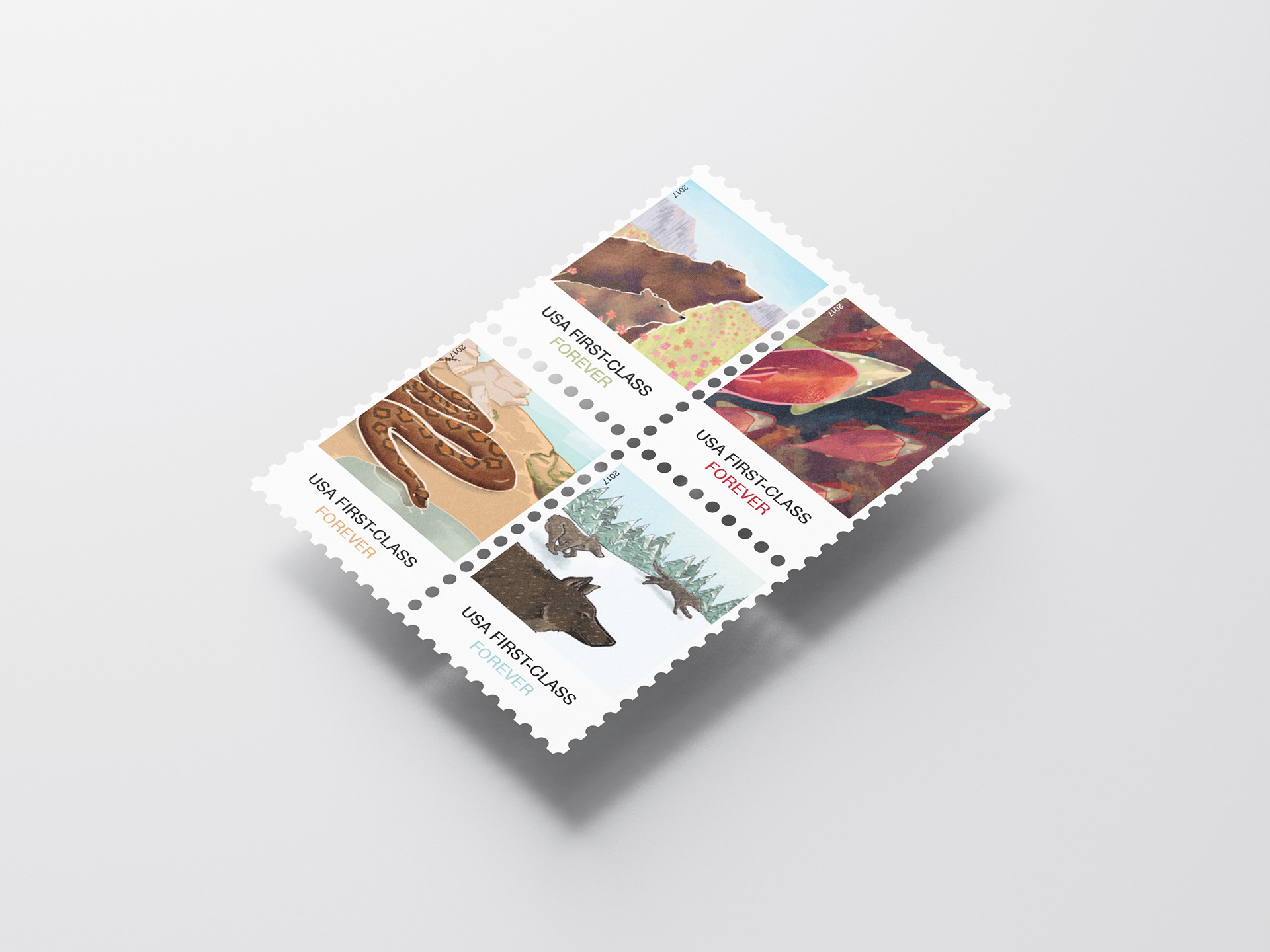 Seasonal Animals illustrations for Yellowstone Forever x USPS