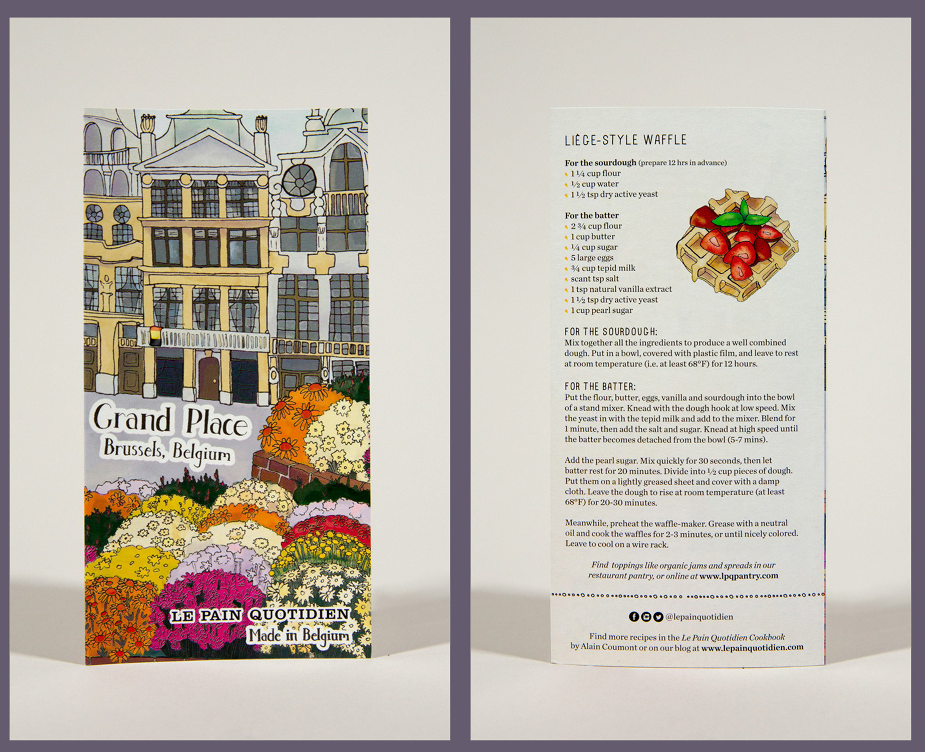 An illustrated check presenter created for Le Pain Quotidien, to highlight the company's Belgian heritage and lead into their 25th anniversary celebrations. Used in restaurants during the summer to early fall season.